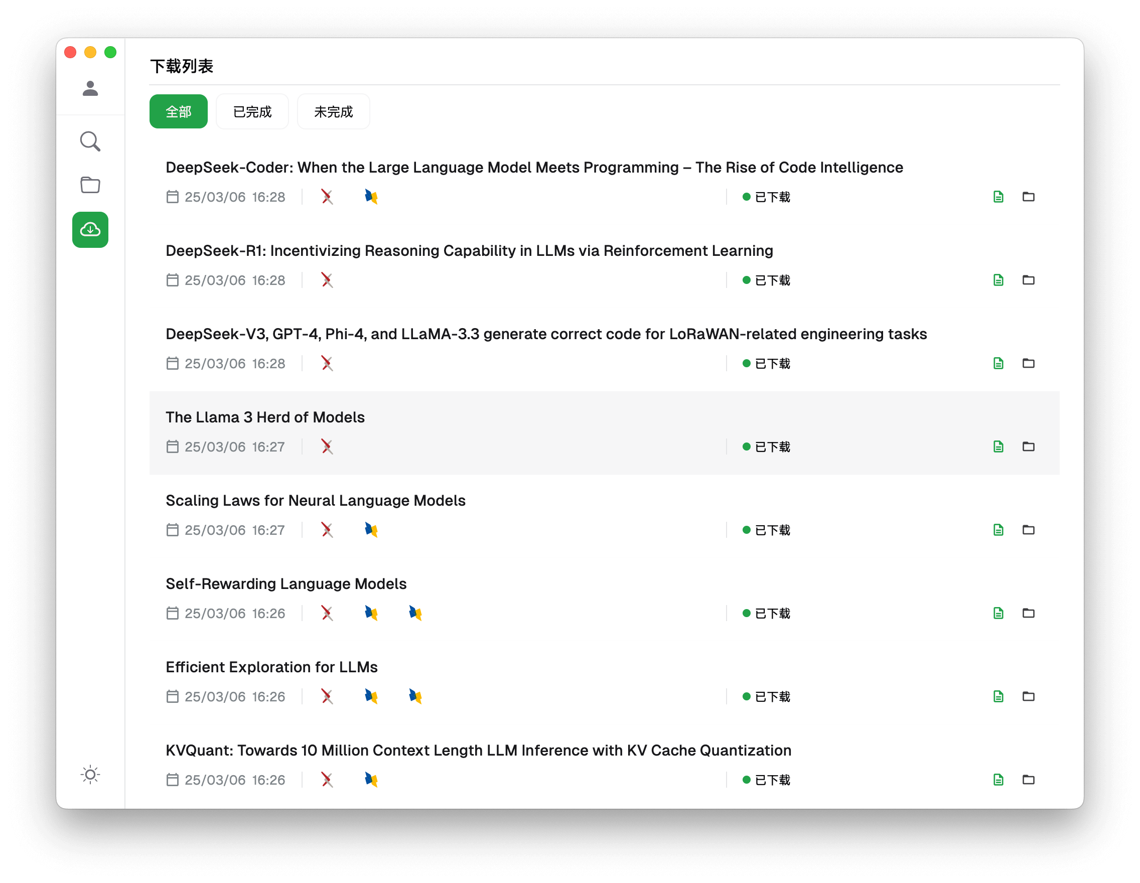 智能分析数据源,一键下载 pdf。可同时下载多篇论文,并实时显示下载进度。